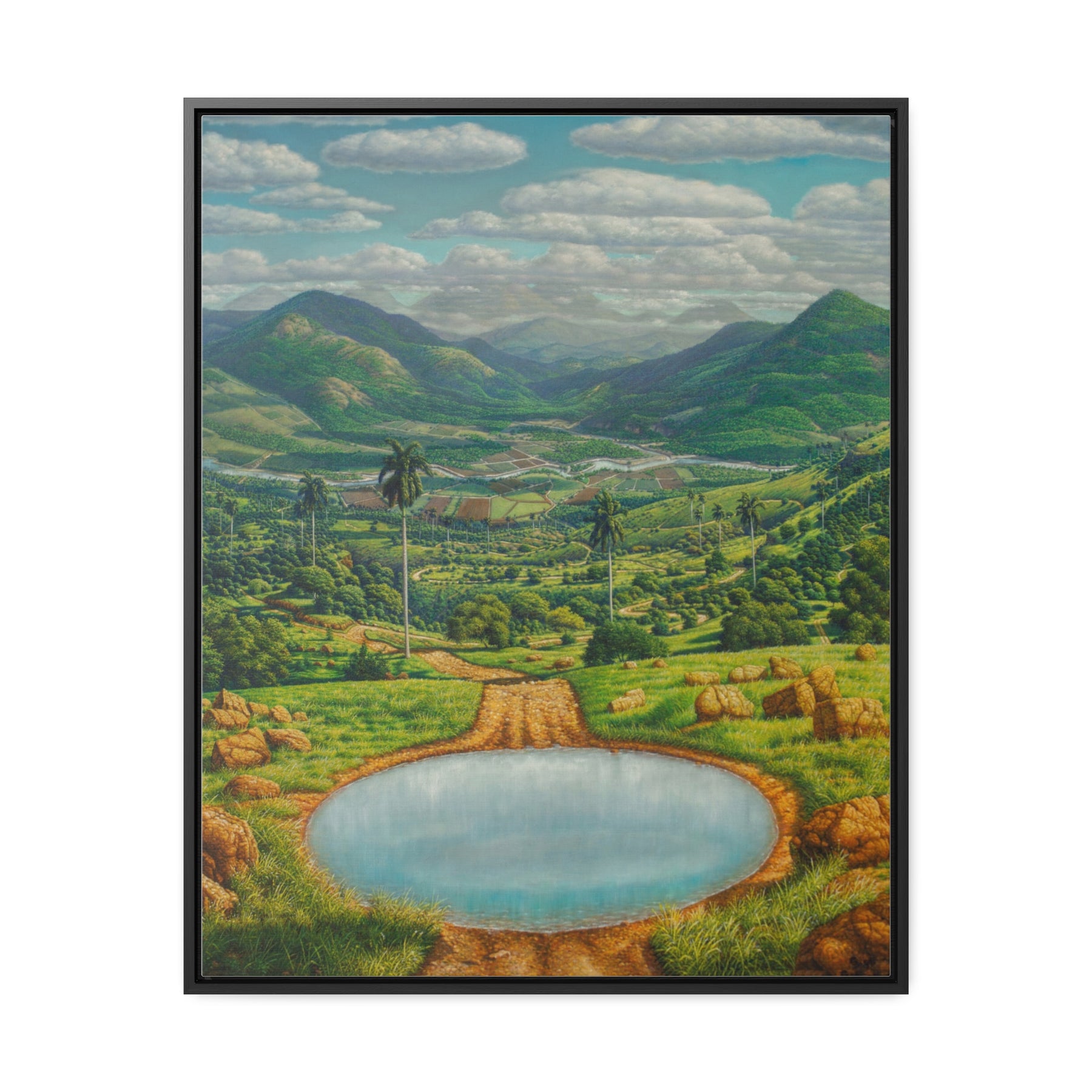 Answer 2: The artwork is printed on a 100% cotton fabric canvas, supported by a sturdy poplar wood frame available in walnut or black finishes.